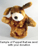 For Monetary Donations, Feel free to donate any amount. However, a financial donation of $20 would pay for 12 soft animal puppets and the cost of mailing them.