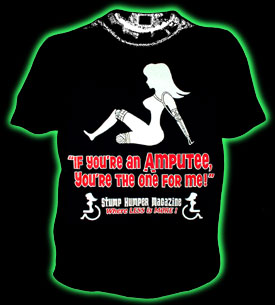 I don't know about you - but a lady missing a limb or 2 gets me HOT! This is a promo shirt for my upcoming "Stump Humper Magazine" - Where I prove less is MORE! I am going to give Paul McCartney a Free Subscription once the magazine is published, HA!